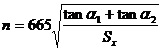 ①式與傳統(tǒng)求轉速公式完全一樣,但它誘導的前提是截然不同的,它是完全根據(jù)動顎運動軌跡求得的,完全符合復擺顎式破碎機動顎運動的實際情況。而傳統(tǒng)求得式的結果是建立在動顎平行移動的基礎上,完全不符合動顎實際運動感情況,并相差懸殊。且根據(jù)①式可知,轉速n、噬角a和擺動行程Sx三個參數(shù)是相匹配的。當機構設計后Sx為定值,主軸轉速n值隨動顎壓縮到終點時齒面噬角a值改變而改變。